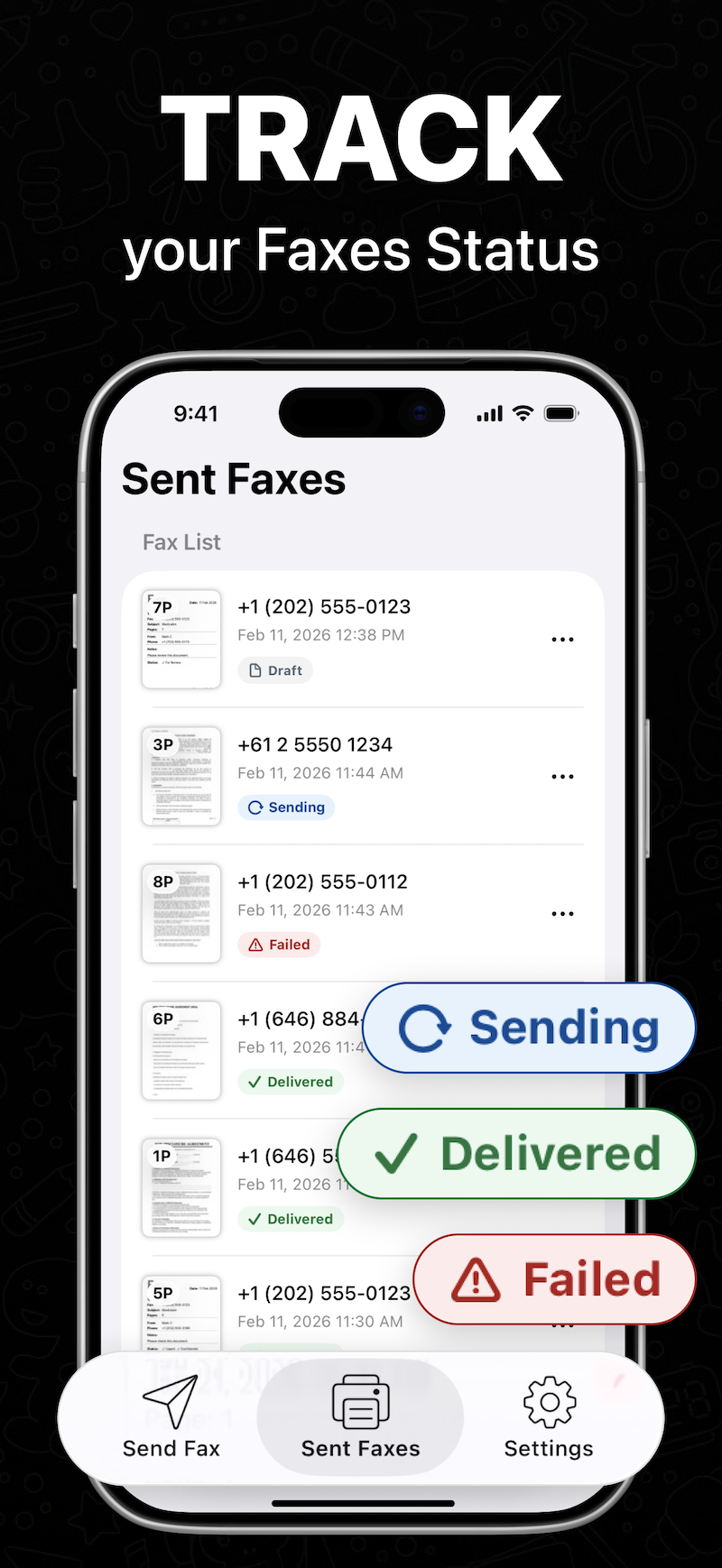 Track your fax status and receive confirmation when your fax is successfully delivered.